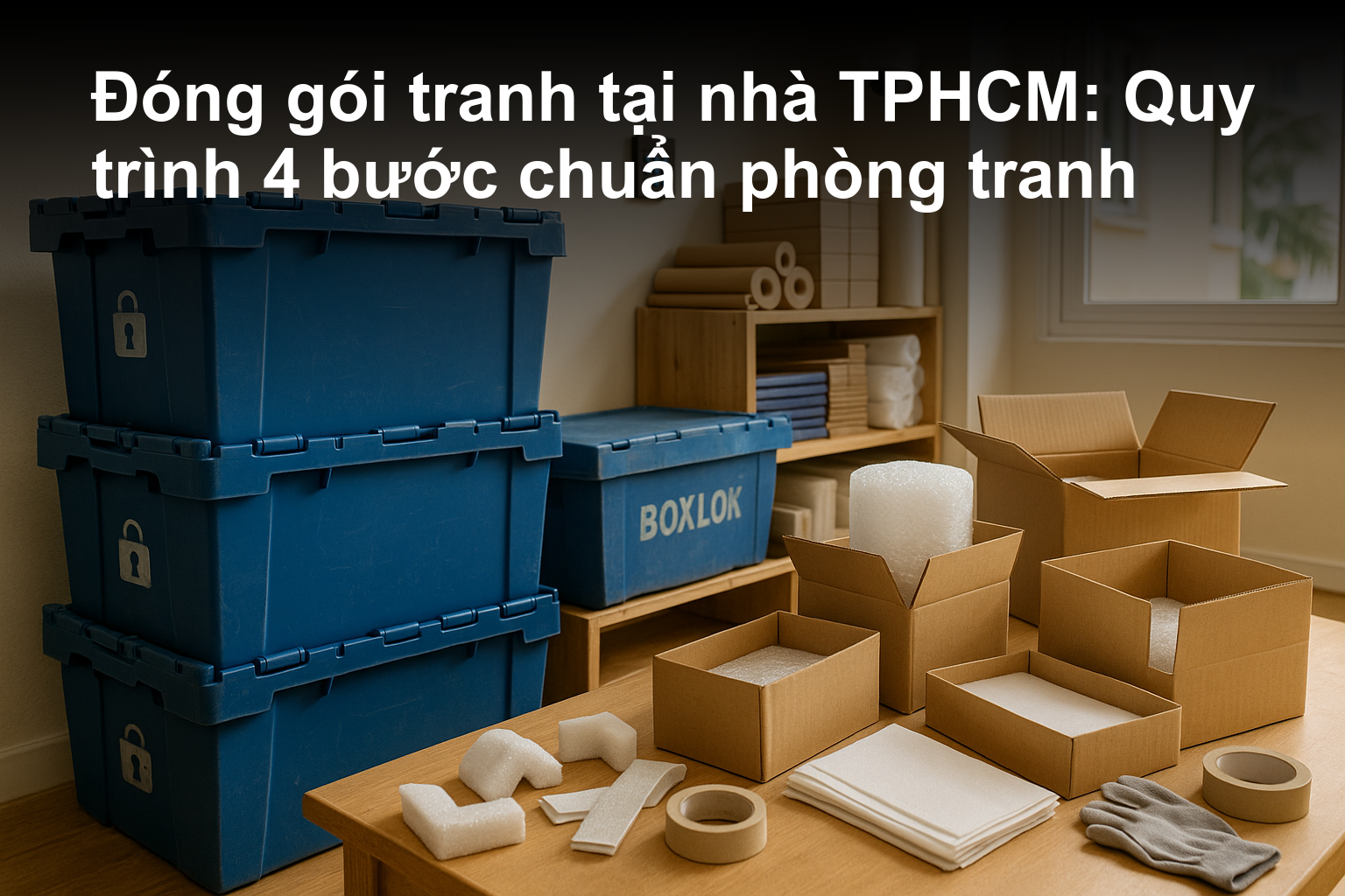 Chi tiết quy trình đóng gói tranh tại nhà ở TPHCM gồm xem tác phẩm, tư vấn vật liệu, đóng gói và bàn giao từ BoxLok giúp bảo vệ tuyệt đối tác phẩm nghệ thuật. Đặt lịch đóng gói chuyên nghiệp, đúng hẹn, an toàn ngay.