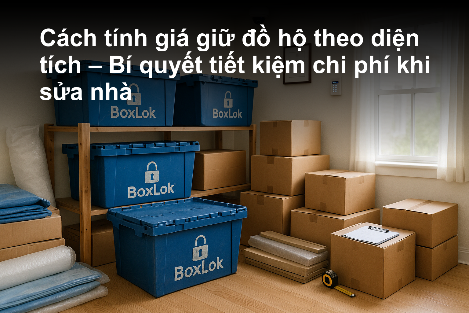 Tính giá giữ đồ hộ theo m² rõ ràng. Hướng dẫn ước lượng diện tích, mẹo tối ưu chi phí khi sửa/dọn nhà. Không phí ẩn, hợp đồng linh hoạt.