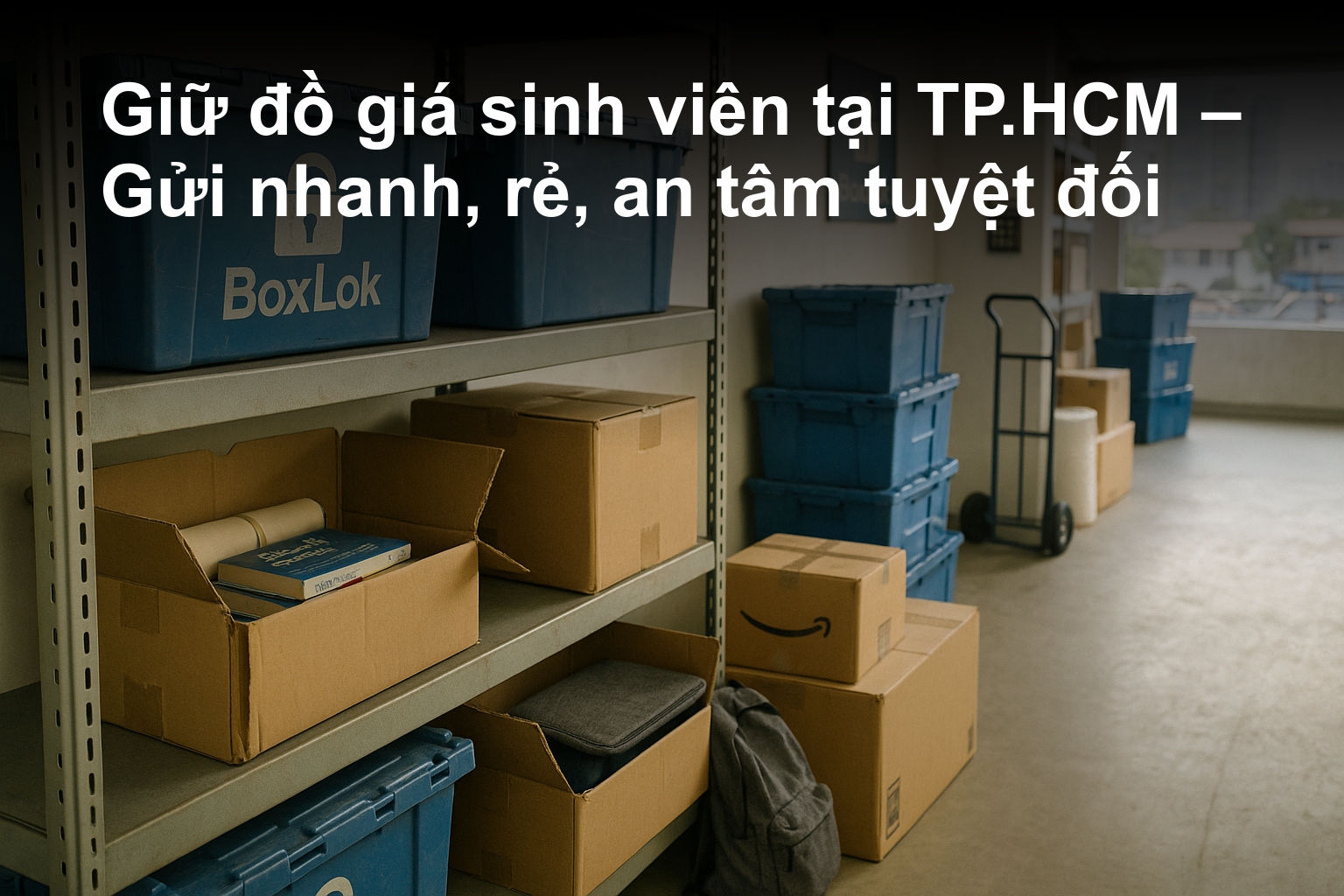 Giữ đồ giá sinh viên tại TP.HCM: gói linh hoạt ngắn - dài hạn, lấy trả tận nơi, niêm phong an toàn. Tiết kiệm mùa nghỉ, không phải mang vác.